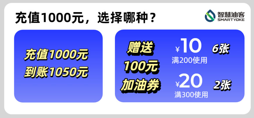 在面额设定上也是有讲究的,加油券一定要设定门槛和有效期,比如6张10元的满200元可用,2张20元的满300元可用,3个月有效期。当客户还没消耗完优惠券,而充值余额不够的时候,可以再推出一个充值活动衔接上,实现持续锁定。
