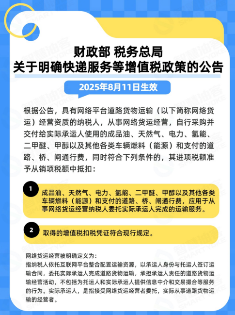 两项政策的结合不仅重塑了网络货运平台的税务处理框架,还在产业链中为加油站与物流企业的深度合作提供了制度性支持。