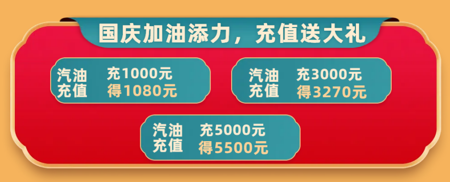“国庆加油添力,充值送大礼”活动: